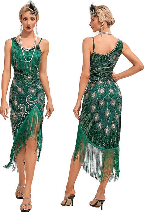 Roaring 20S 1920S Knee Length Dress Flar Dress Outfits Sleeveless The Great Gatsby Charleston Wedding Guest Sequins Tassel Fringe Feather V Neck Fancy
