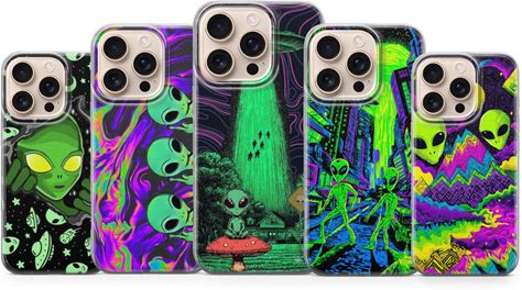 Alien Phone Case, Psychedelic UFO Art Gift Cover For iPhone 17 Pro Max, 16E, 15, 14, 12 & Samsung S25 Ultra, S24 FE, A56, Pixel 10 XL, 9A, 8